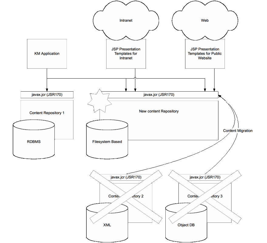 Through their standardized interface these repositories allow simple migration of the content from the two old repositories to the new one; this means that the content can be converted from the source repository to the newly purchased destination repository through a simple export and import.